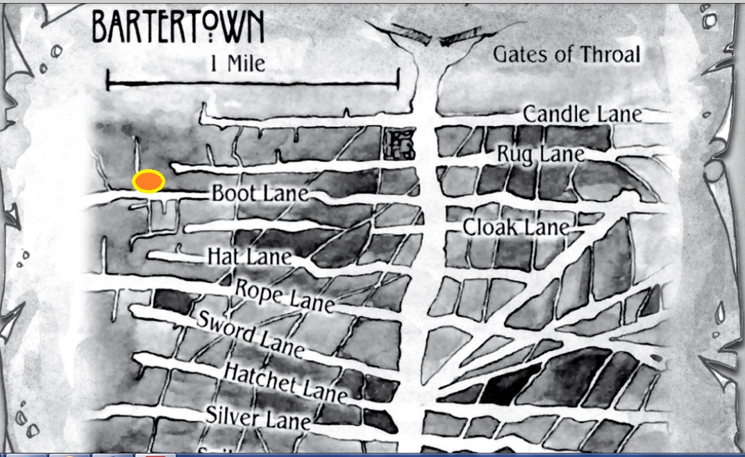 Ochraniali jego karawanę na throalskim szlaku, wiodącym z Darranis, przez Ardanyan do Throalu. Perfumiarz musiał mieć wielu wrogów i okrutnego pecha. Nie dość, że odkryli szpiega konkurencji, którego ktoś potajemnie zamordował, to wpadli w zasadzkę Czaszkowych Wilków, sprokurowaną najpewniej przez ich byłego już, przewodnika. Gdyby nie szczęśliwy przypadek, że throalska galera Spiżowy Orzeł, przelatywała w pobliżu, zapewne zginęli by rozniesieni przez orkowych łupieżców.